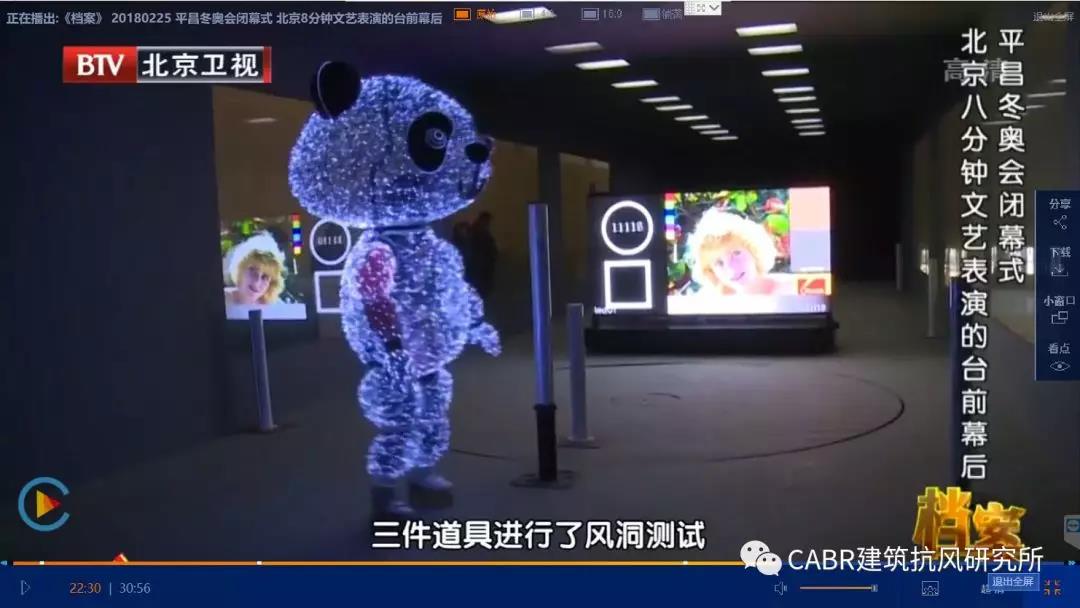 在2018年2月25日平昌冬奧會閉幕式上,人工智能“冰屏”不斷變幻,輪滑演員曼妙舞姿,配合炫彩繽紛的地面投影,“北京8分鐘”驚艷世界?!翱萍紛W運”完美呈現的背后,是科研團隊的全心努力,針對強風、低溫、強磁干擾等各種不利條件開展了大量研究工作。其中中國建筑科學研究院建筑抗風研究所承擔了“冰屏”的抗風性能試驗和“熊貓”的風中滑行測試。