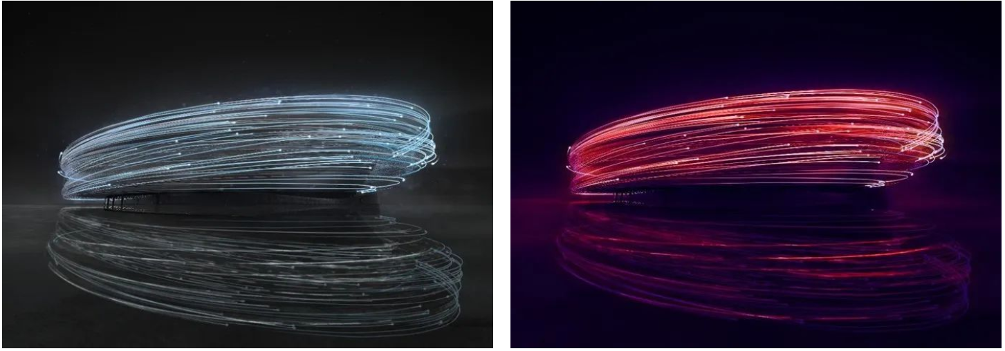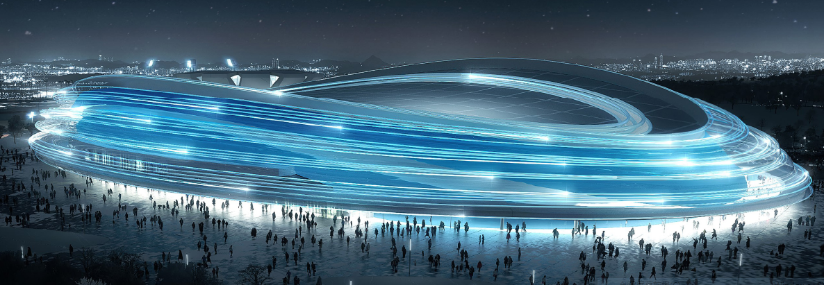 國家速滑館,它有一個晶瑩美麗的昵稱 — “冰絲帶”。由象征著2022年的22條“冰絲帶”交織成繭,新一代的奧運之星從此破繭而出?!氨z帶”的建筑立面線條流暢、造型富有動感,像速滑運動員在冰面上高速滑動,留下的一圈圈風馳電掣的軌跡,體現了冰上運動的速度和激情!