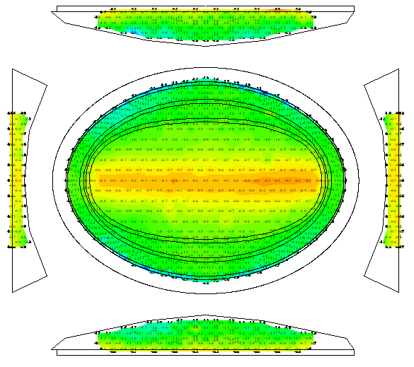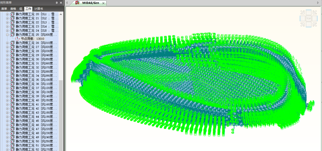 “冰絲帶”的屋頂結構采用單層索網(wǎng)結構形式。為了合理準確地評估如此巨大的單層索網(wǎng)屋蓋在風荷載作用下的性能,以及圓管對幕墻局部的荷載影響,風洞試驗研究設置了兩種工況:一種是幕墻外配有環(huán)向管的情況,另一種是拆掉環(huán)向管的情況。通過兩種工況的對比試驗,可以清楚地發(fā)現(xiàn),帶環(huán)向管時玻璃幕墻表面的風壓分布會比較均勻。結合試驗測試數(shù)據(jù)進行的風致振動分析,給出了結構工程師最為關心的各個風向下的等效靜力風荷載。