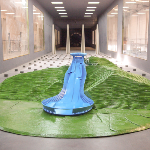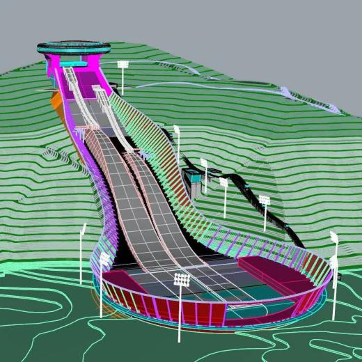此外,風工程團隊還完成了國家跳臺滑雪中心項目的風洞試驗。該項目是北京冬奧會張家口賽區(qū)工程量最大、技術難度最高的競賽場館,也是我國首座跳臺滑雪場館。頂部與底部落差達160多米,外形好似中國古代象征吉祥的擺件——如意,因此得名“雪如意”。由于周邊山地影響,該項目的風荷載計算非常復雜。風工程團隊承擔了風洞試驗和風振計算,為設計方提供了準確的風荷載計算取值依據(jù)。
