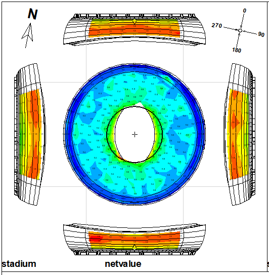 盧賽爾城當?shù)?s陣風基本風速為38m/s,風工程團隊在風洞中制作了1:250的模型,按照ASCE/SEI7-16和ASCE/SEI49-12的要求進行了風洞試驗和相關數(shù)據(jù)處理,給出了36個風向下風壓系數(shù)分布以及50年重現(xiàn)期下極值壓力的統(tǒng)計值。根據(jù)風洞試驗數(shù)據(jù),對盧塞爾體育場的風振響應進行了分析,并提供了50年一遇的等效靜風荷載。夏馬風是中亞及波斯灣一帶一種強烈的西北風,通常會產(chǎn)生大型沙塵暴。夏馬風可能會將地面沙塵卷入空中并在體育場屋面發(fā)生沉積。風工程團隊使用CFD軟件對盧塞爾體育場周圍的風沙運動進行了全尺度數(shù)值模擬,獲得了屋面上的積沙分布情況。
