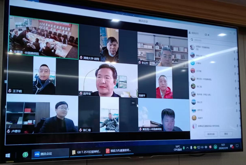 2024年1月19日,由中國建研院主編,中建研科技承擔(dān)主要編制工作的國家標(biāo)準(zhǔn)《預(yù)應(yīng)力孔道灌漿材料(送審稿)》(以下簡稱《標(biāo)準(zhǔn)》)審查會在京順利召開。