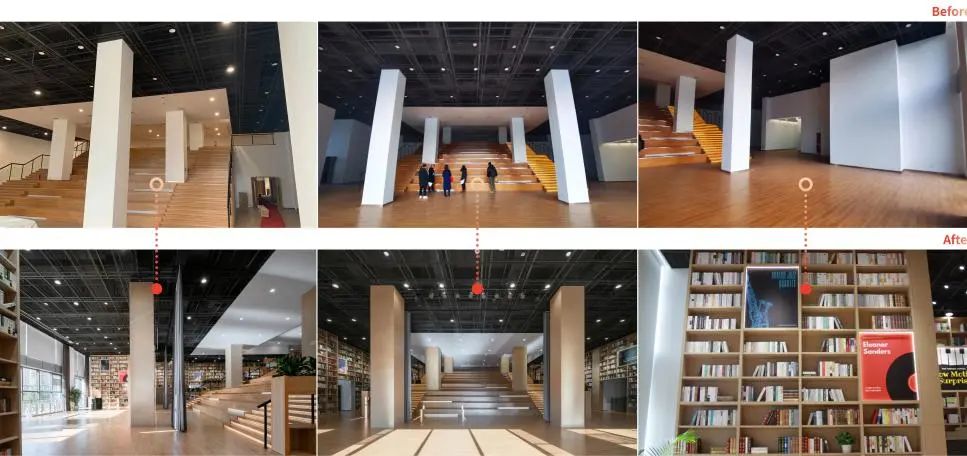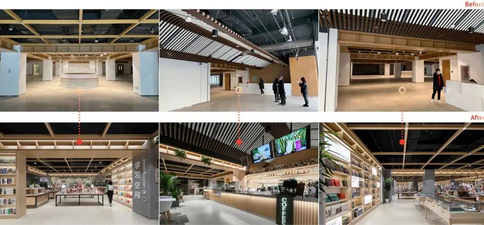 尊重原場地設計,進行了多層次、多頻率的漸進式微更新。更新的方式不只是傳統(tǒng)的土建裝飾,通過軟文化多層次置入,以較少的代價改變原有空間的屬性,創(chuàng)造新的內(nèi)容運營平臺。為居民打造“美學生活方式提案平臺”一個家門口的遠方。