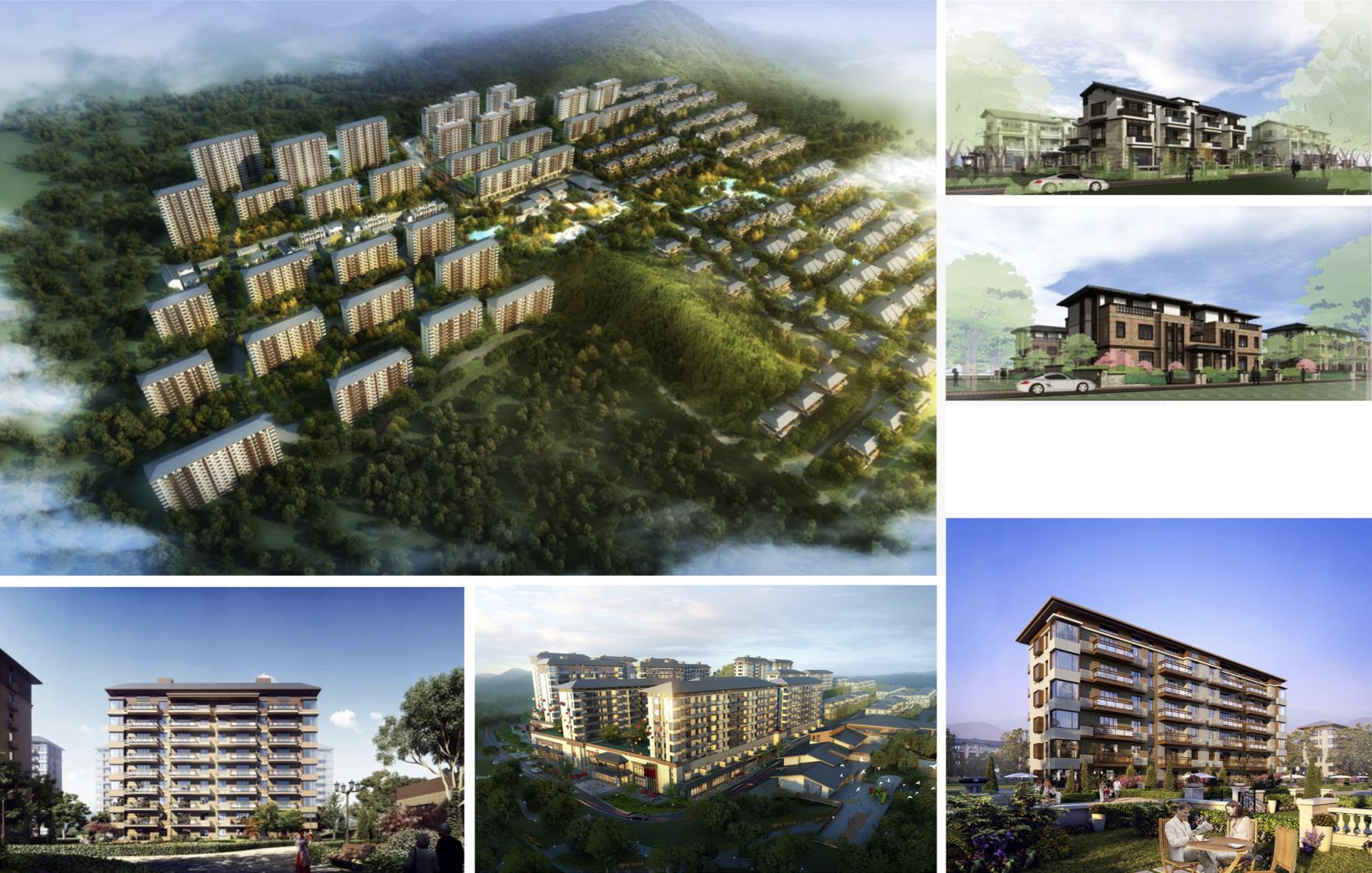 本項目占地面積52300平方米,約78畝,新建住宅建筑28棟,紅線范圍內(nèi)西低東高,北高南低,然高差約16米。根據(jù)建筑類型,將場地劃分為西側(cè)洋房區(qū)和東側(cè)雙拼區(qū),洋房區(qū)依據(jù)地勢劃分為69米和74米兩個平臺,平臺內(nèi)釆用院落式的布局形式,形成若干組團,組團內(nèi)部營造溫馨靜謐的小環(huán)境,給住戶帶來領(lǐng)域感和安全感,給鄰里交往和戶外活動提供良好的空間,非常符合現(xiàn)代人交流的心理需要。組團之間形成開闊的視覺通廊,可觀賞整個區(qū)域的美麗景致;雙拼區(qū)依據(jù)地勢自北向南,自西向東,建筑沿宅間小路相互錯落,層層跌落,構(gòu)造出豐富多樣的空間關(guān)系和富有變化的天際線。